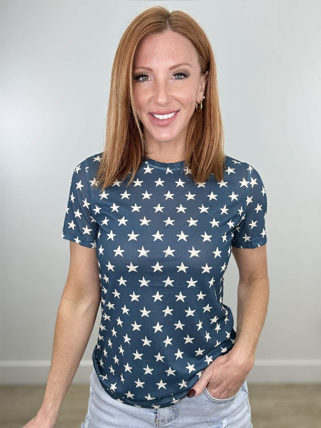 PREORDER Shirley & Stone | Mesh Short Sleeve Tee | Stars - ETA END APRIL