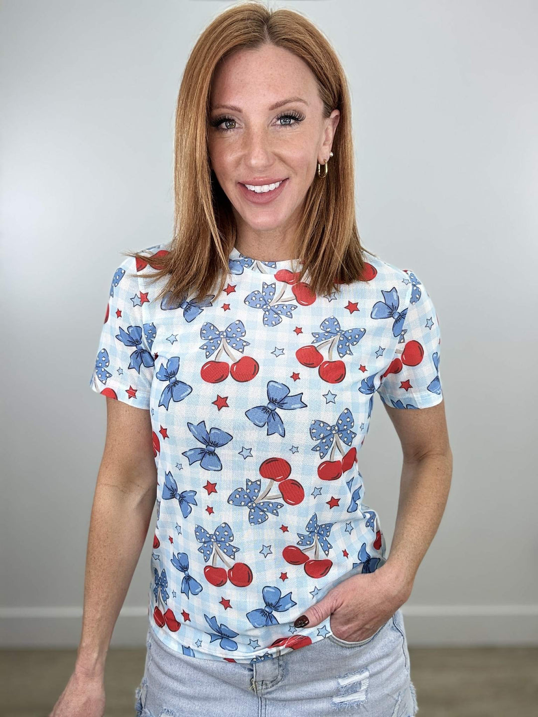PREORDER Shirley & Stone | Mesh Short Sleeve Tee | Cherry Bows - ETA END APRIL
