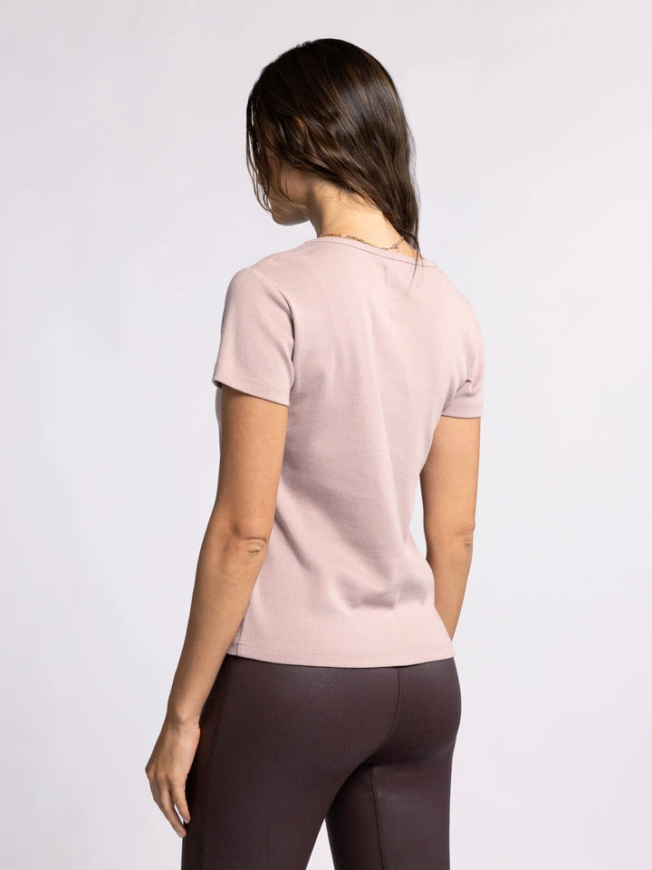 A soft knit tee featured in a classic silhouette and textured fabrication with a crew-neckline and short-sleeves.