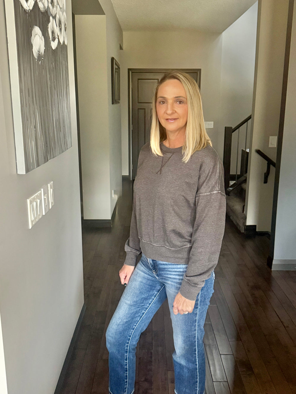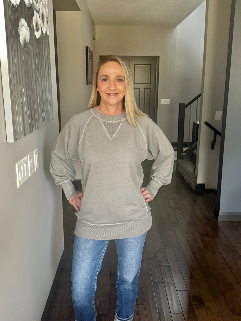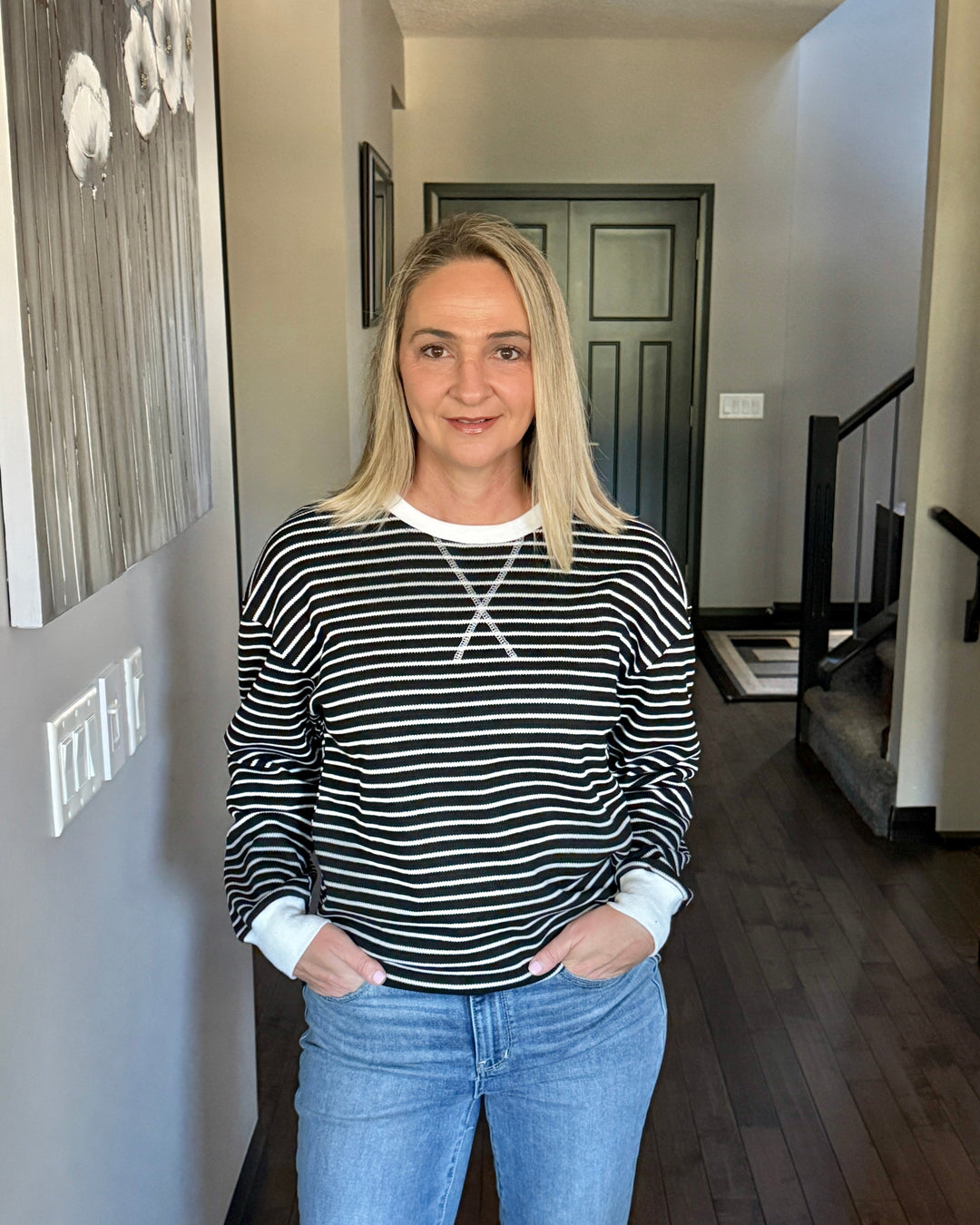 Michelle Mae | Striped Henley Long Sleeve | Charcoal