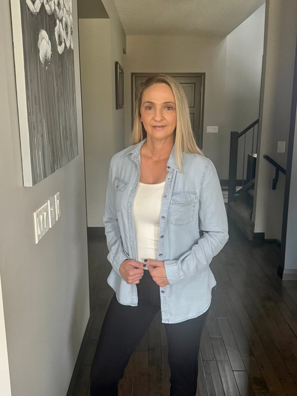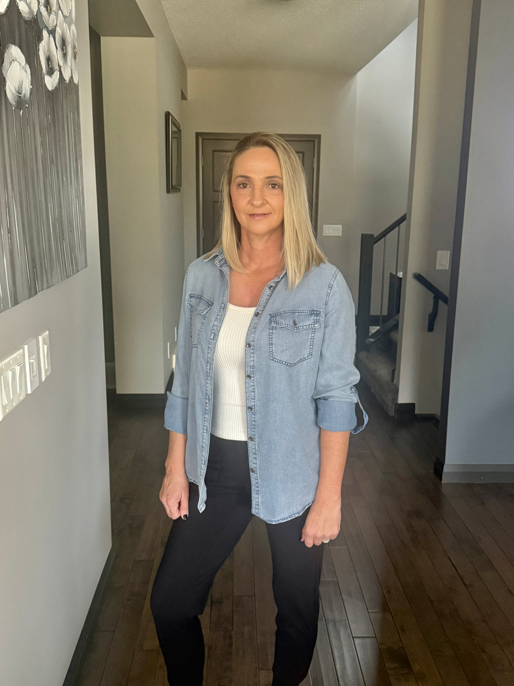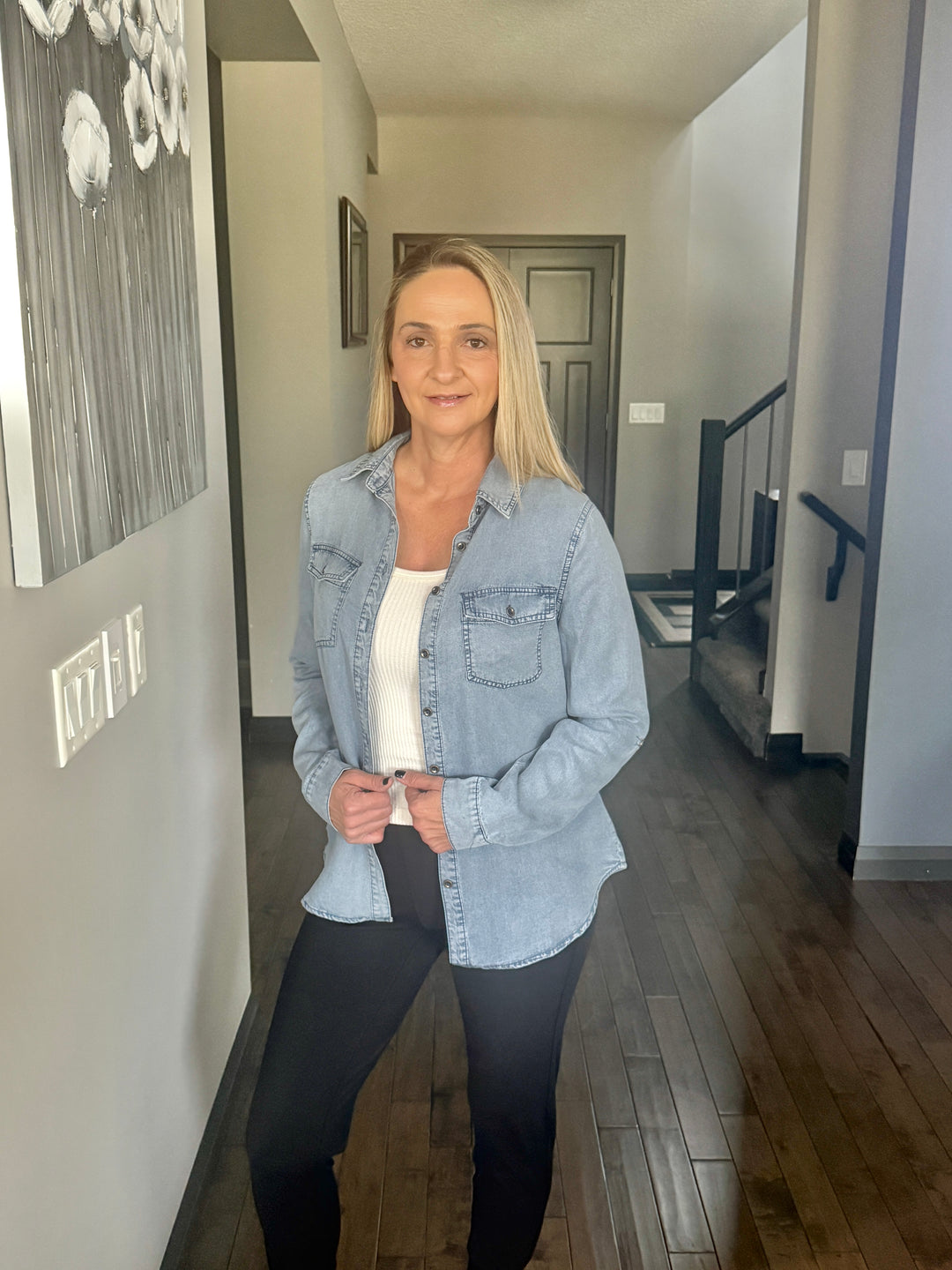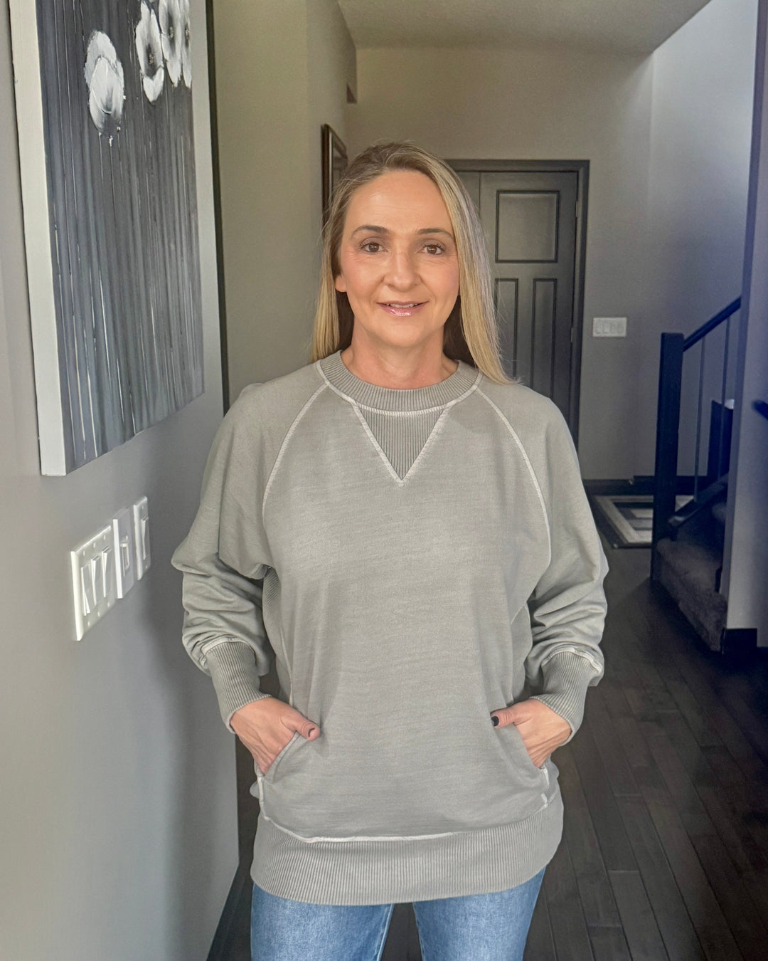 Michelle Mae | Striped Henley Long Sleeve | Charcoal