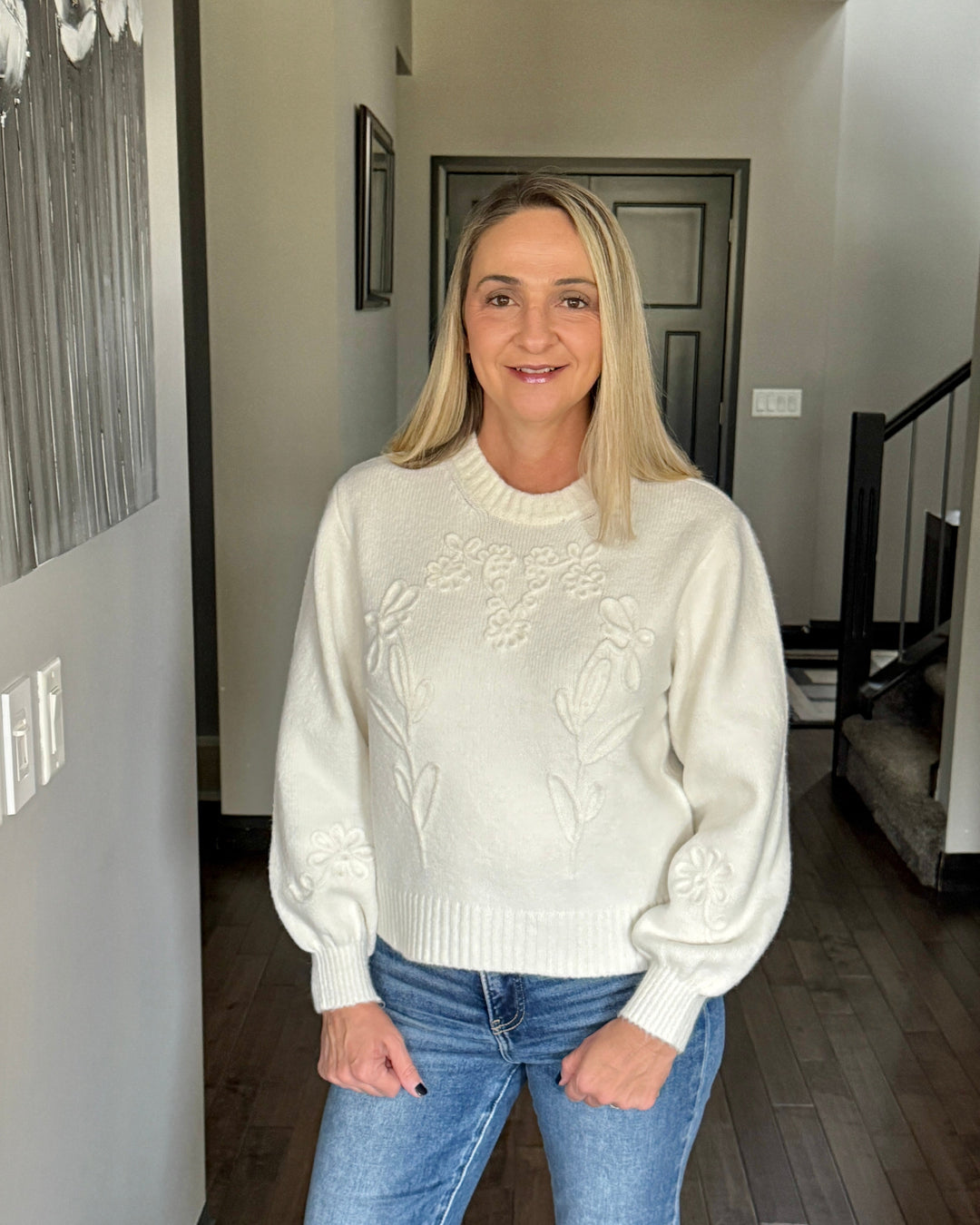 RD Style | Rhiana Floral Embroidered Knit Sweater | Cream