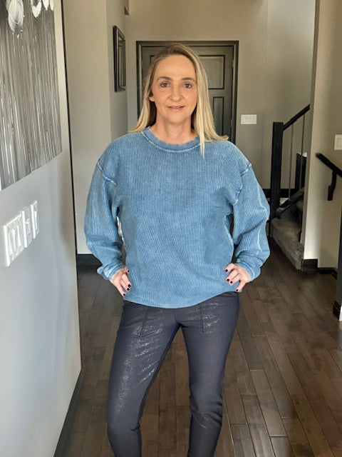 Fit:  Intentionally oversized;  Claire is usually a size small can wear an XS for a more true to size fit or a small for the intended oversized fit;  If you are able to size down and prefer a less oversized fit, sizing down is recommended;  Claire is wearing a small in these photos