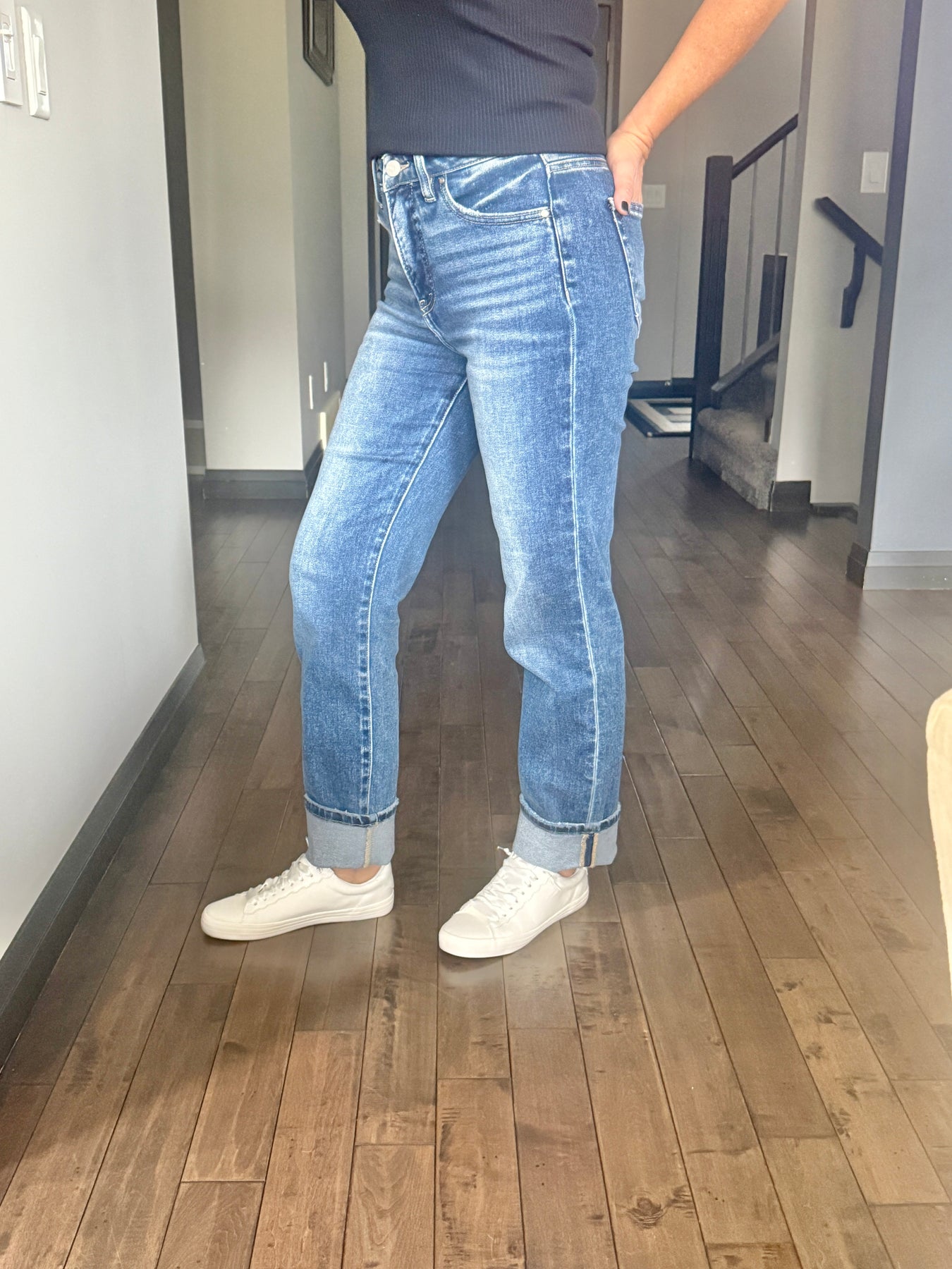 Risen | Lennox Tummy Control Straight Leg Jeans | Dark Wash