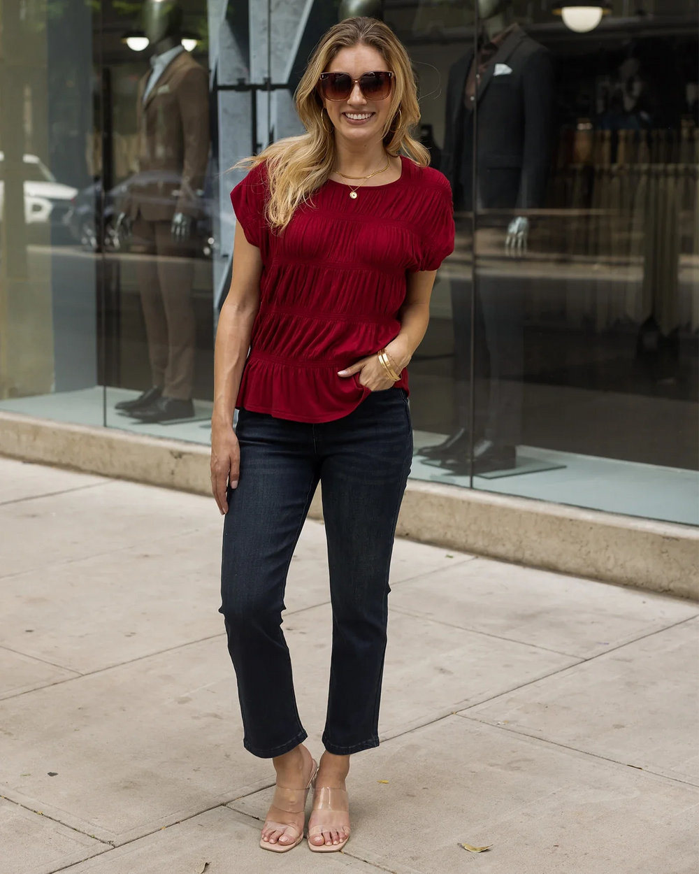 Grace and Lace | Shirred Smocked Top | Perfect Red