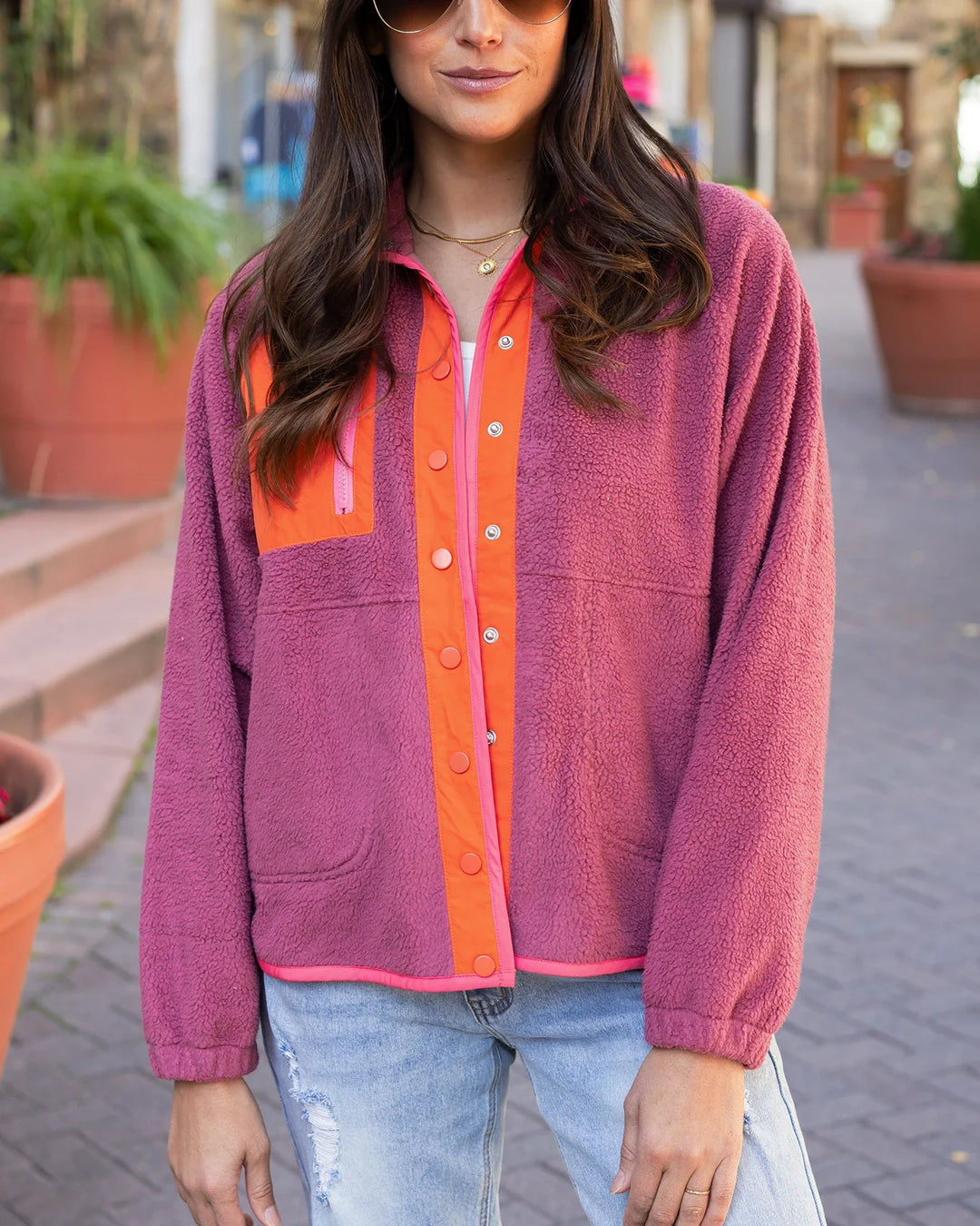 Grace and Lace | Colour Block Fleece Jacket | Berry-Orange